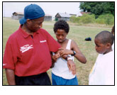 ![]() Neil Albert, who took over as director of the D.C. Department of Parks and Recreation when his predecessor was forced out in November 2000, works with young campers last summer at his department's Camp Riverview. Albert is getting praise for working with the community in general to fix many of his department's internal problems that have frustrated city taxpayers for years. |